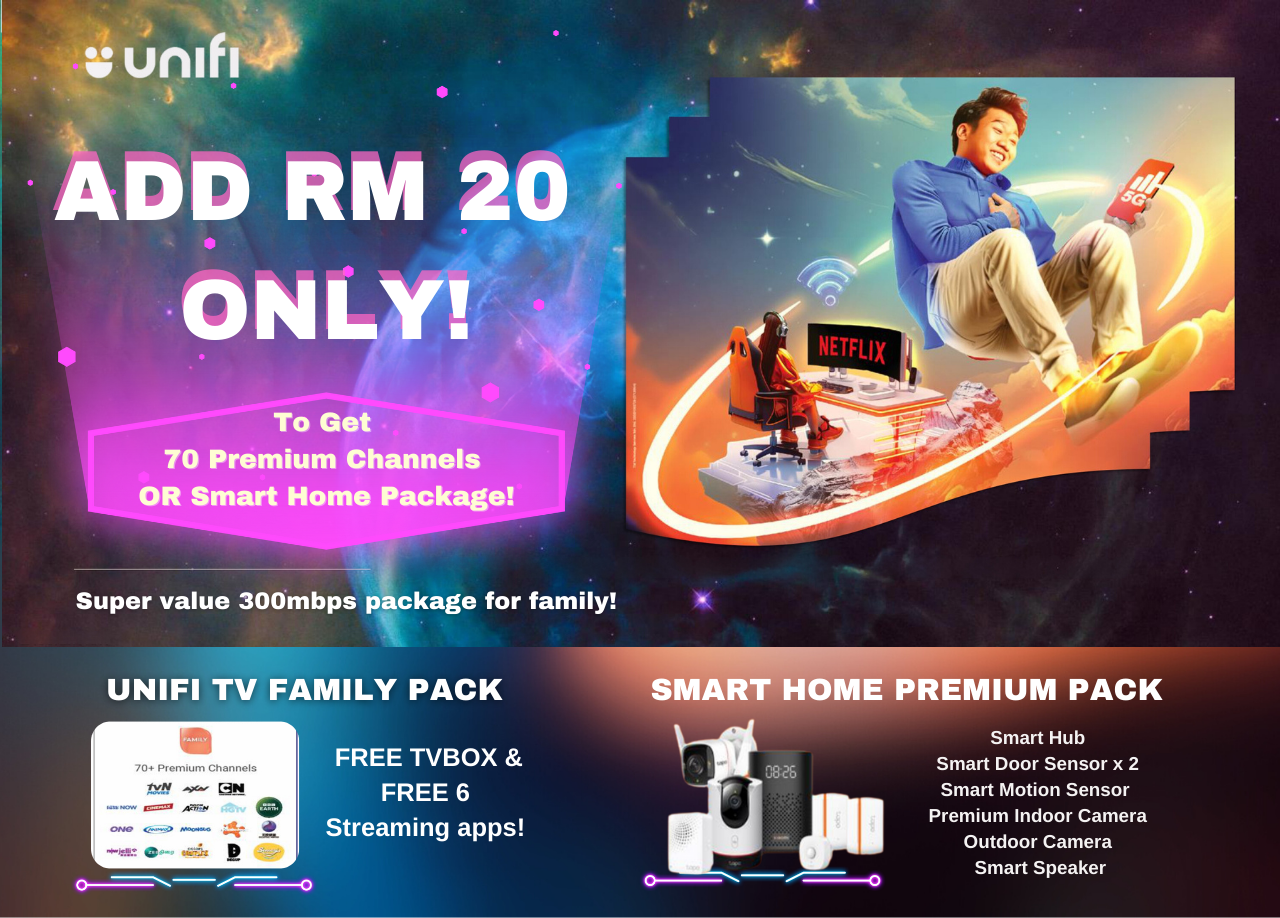 •  Unifi home + Unifi TV Plan  RM 374.90 /mth